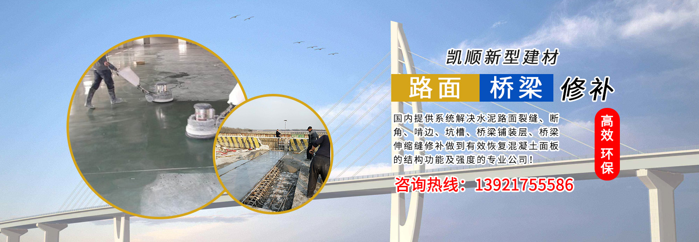 江蘇凱順新型建材有限公司是國內(nèi)提供系統(tǒng)解決水泥路面裂縫、斷角、啃邊、坑槽、橋梁鋪裝層、橋梁伸縮縫修補做到有效恢復混凝土面板的結構功能及強度的專業(yè)公司!為市政工程、高速、國道、省道、縣鄉(xiāng)道路的改造及大修、中修等大型工程提供了快速、高效、環(huán)保、經(jīng)濟系統(tǒng)方案和技術支持!